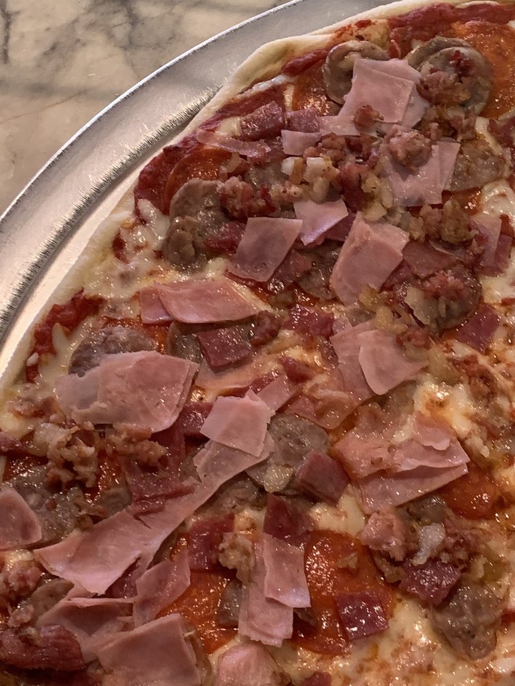 sausage, pepperoni, capicola, mushrooms, eggplant, onions, peppers